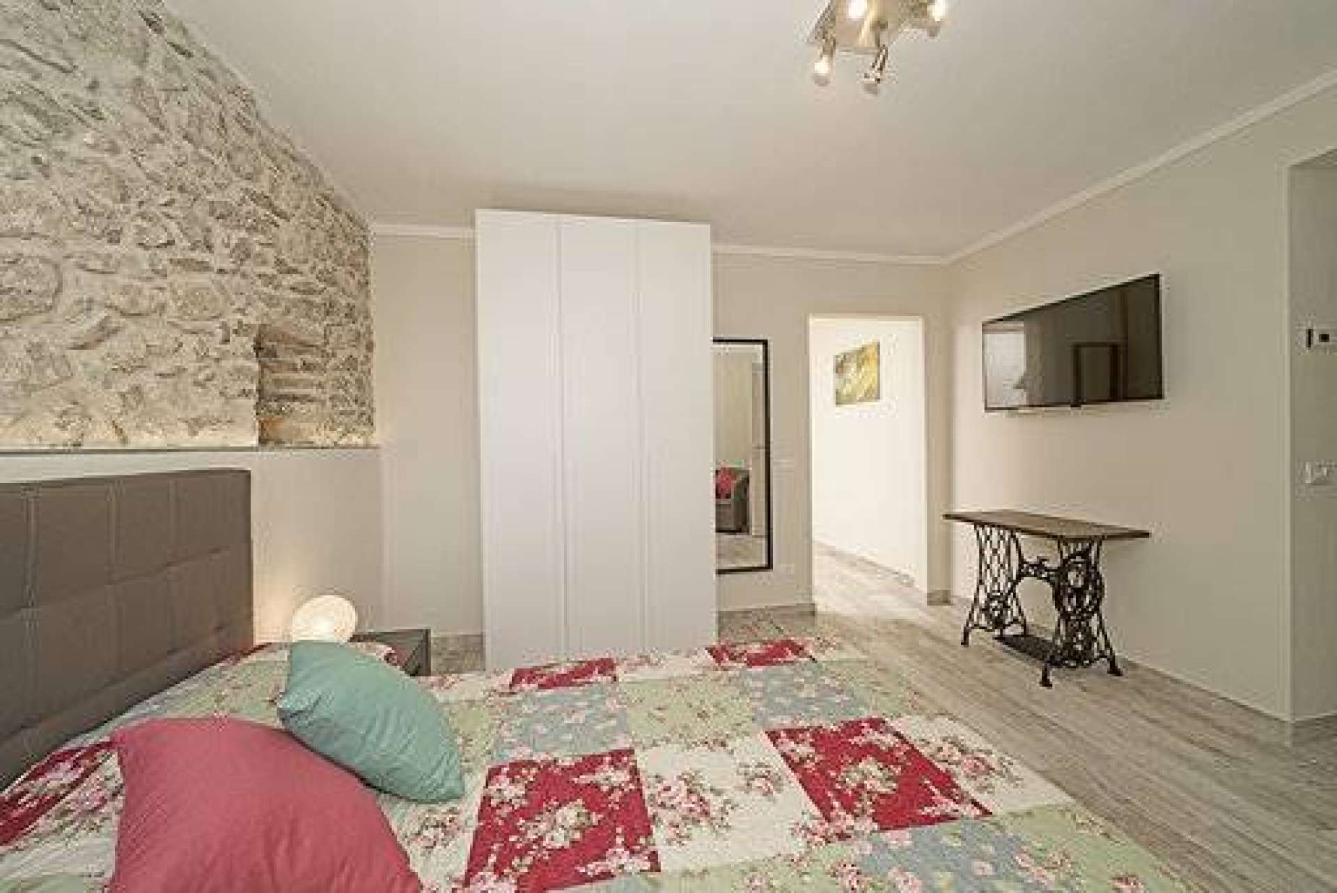 On the ground floor there are large vaulted cellars and internal courtyard, on the mezzanine floor there is a large living room, kitchen, a bedroom with wardrobe and bathroom.