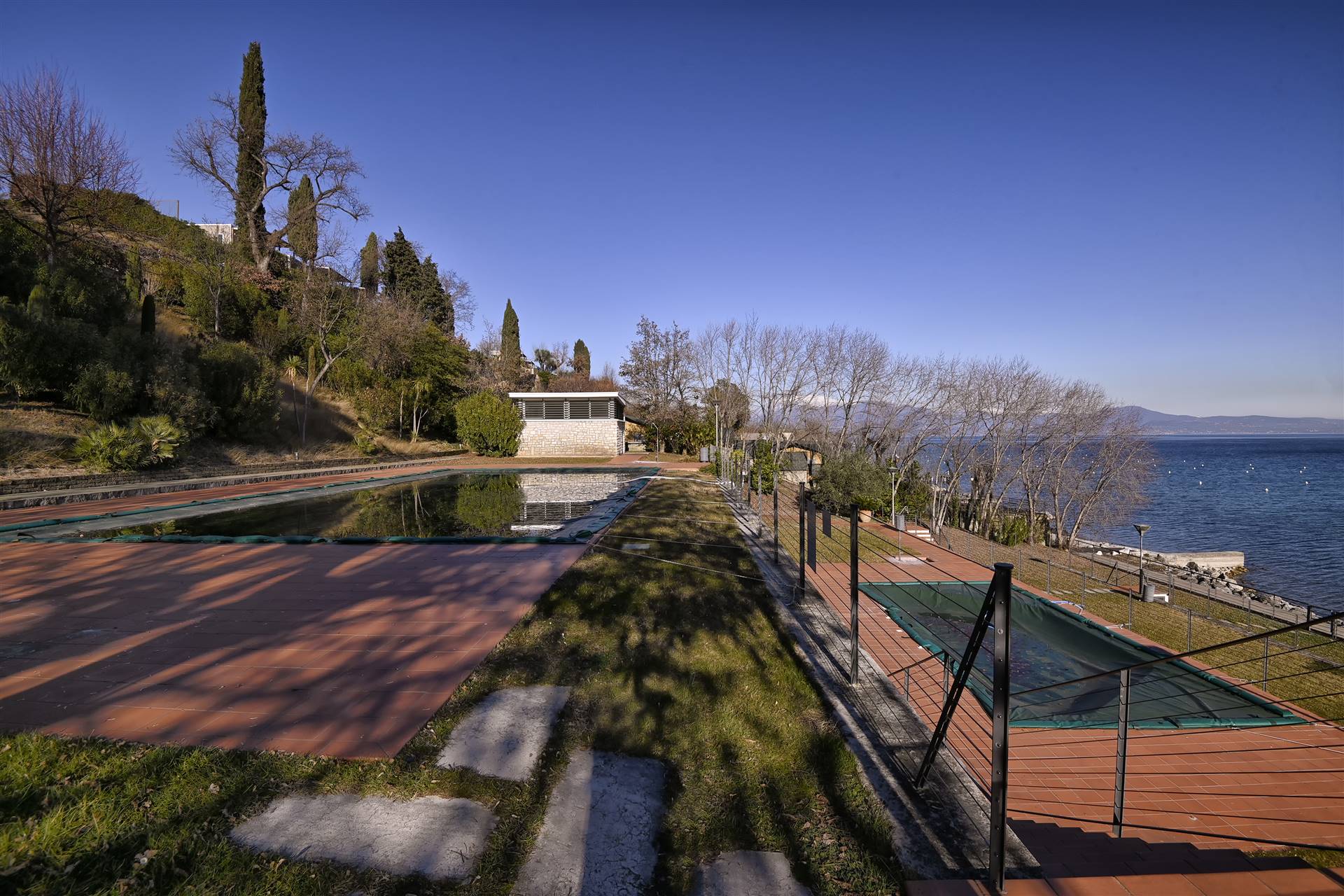 The Gardazzurro residence enjoys an huge pine forest surrounding the entire structure, where there are three swimming pools, tennis courts and direct access to the pier on the lake.