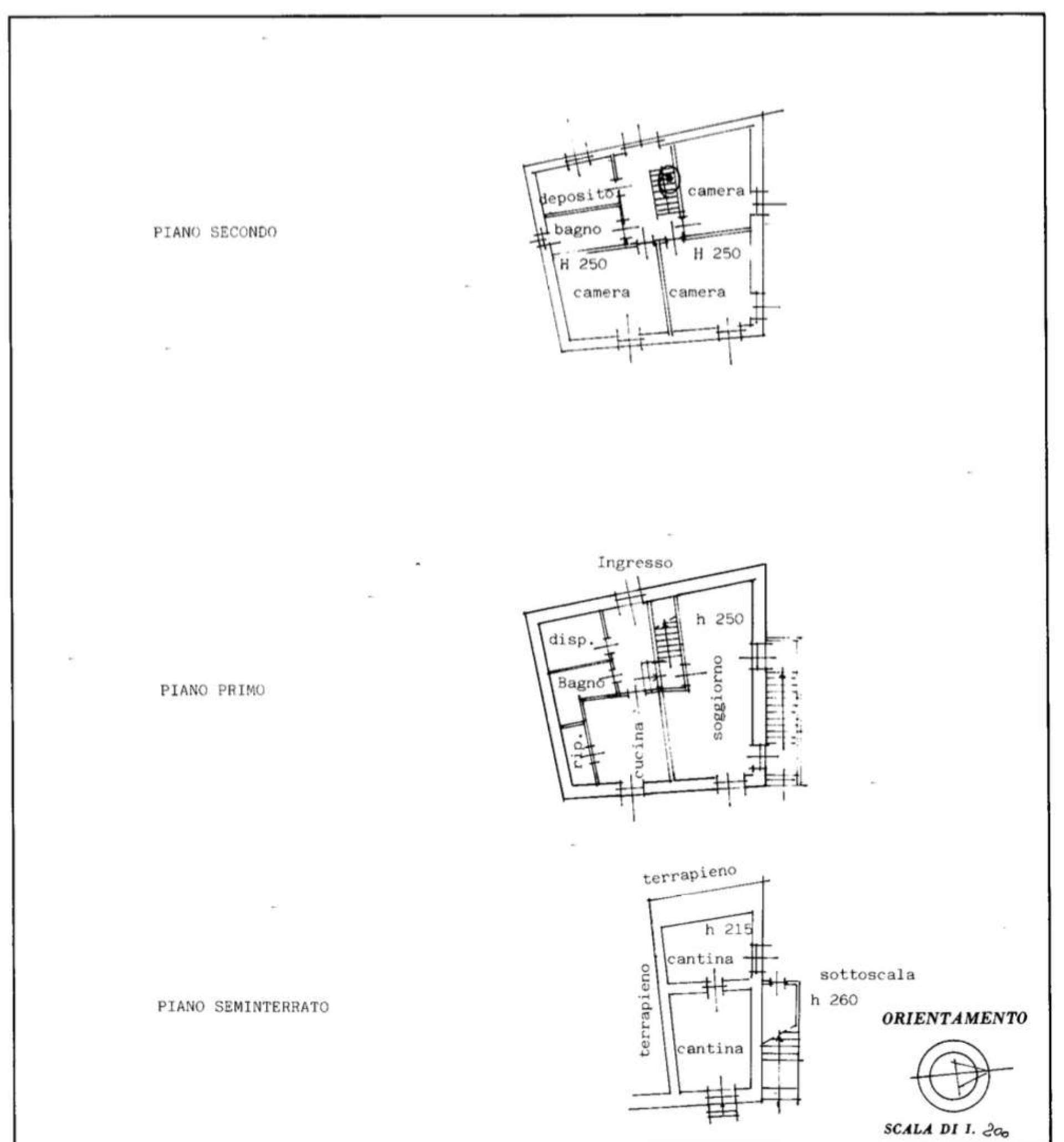 Composizione della proprietà Piano seminterrato: Due cantine e un sottoscala.