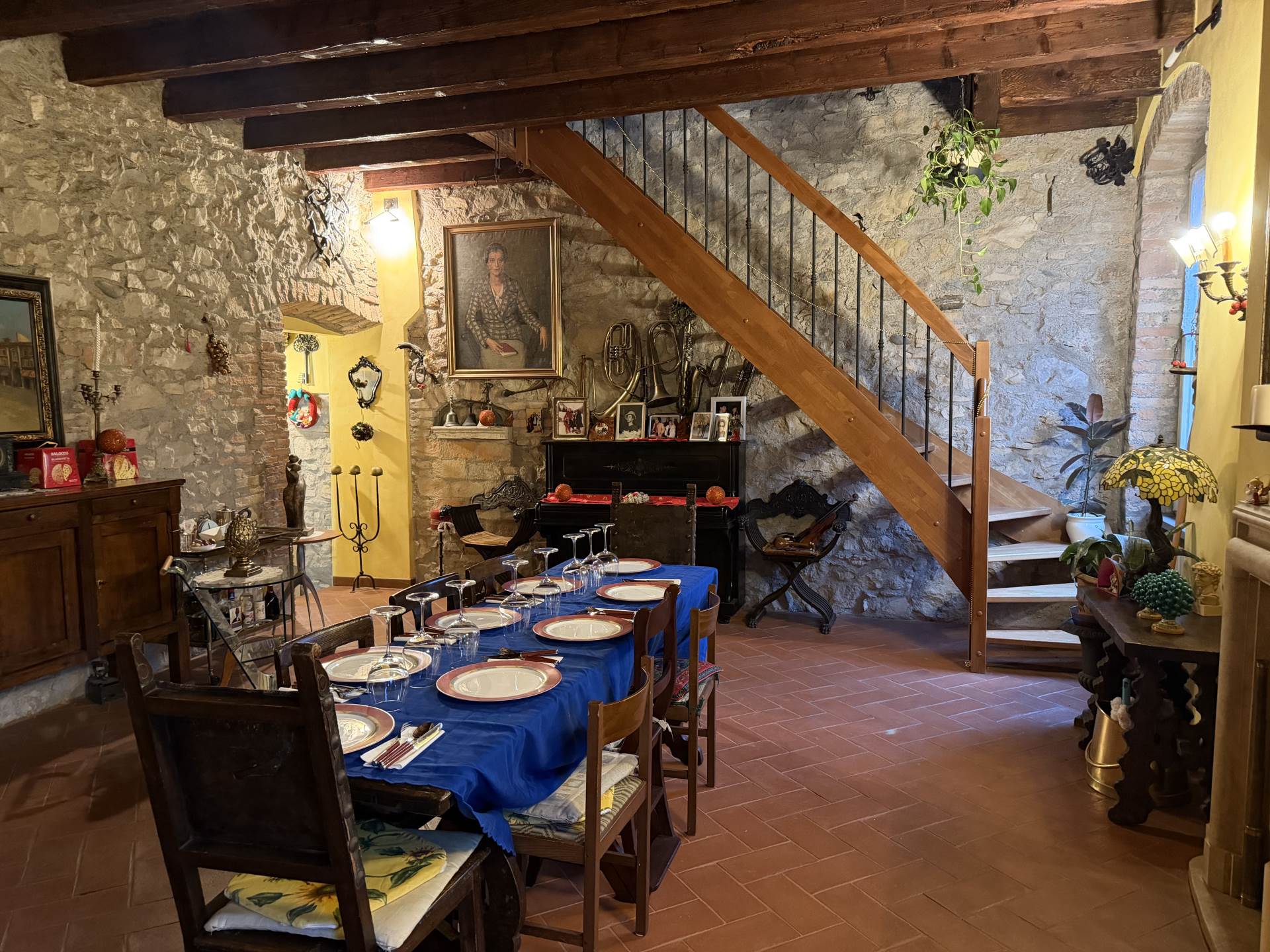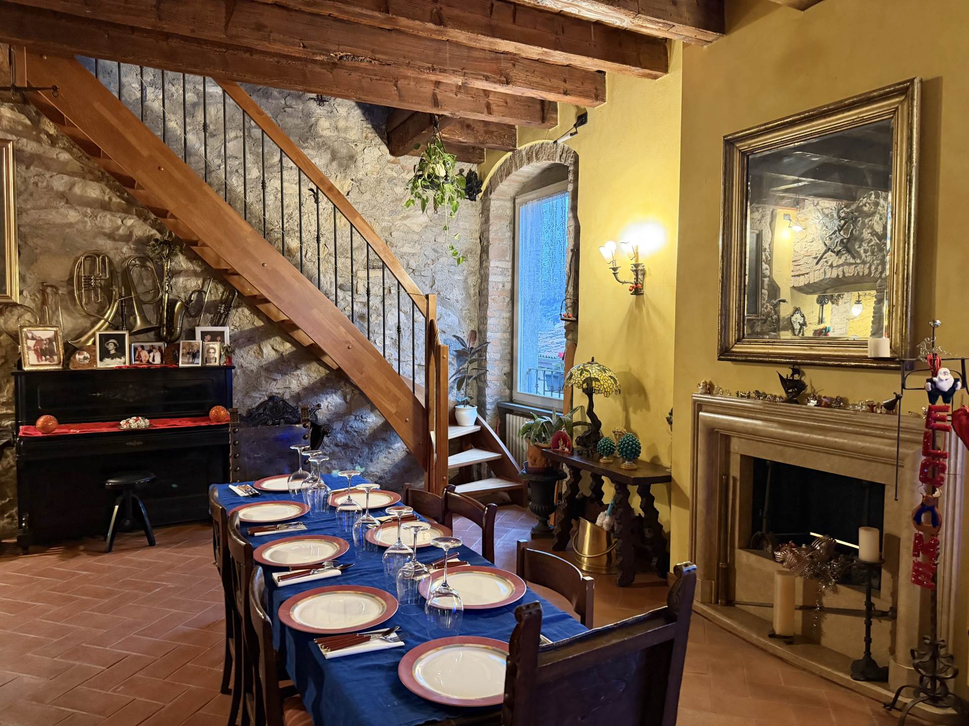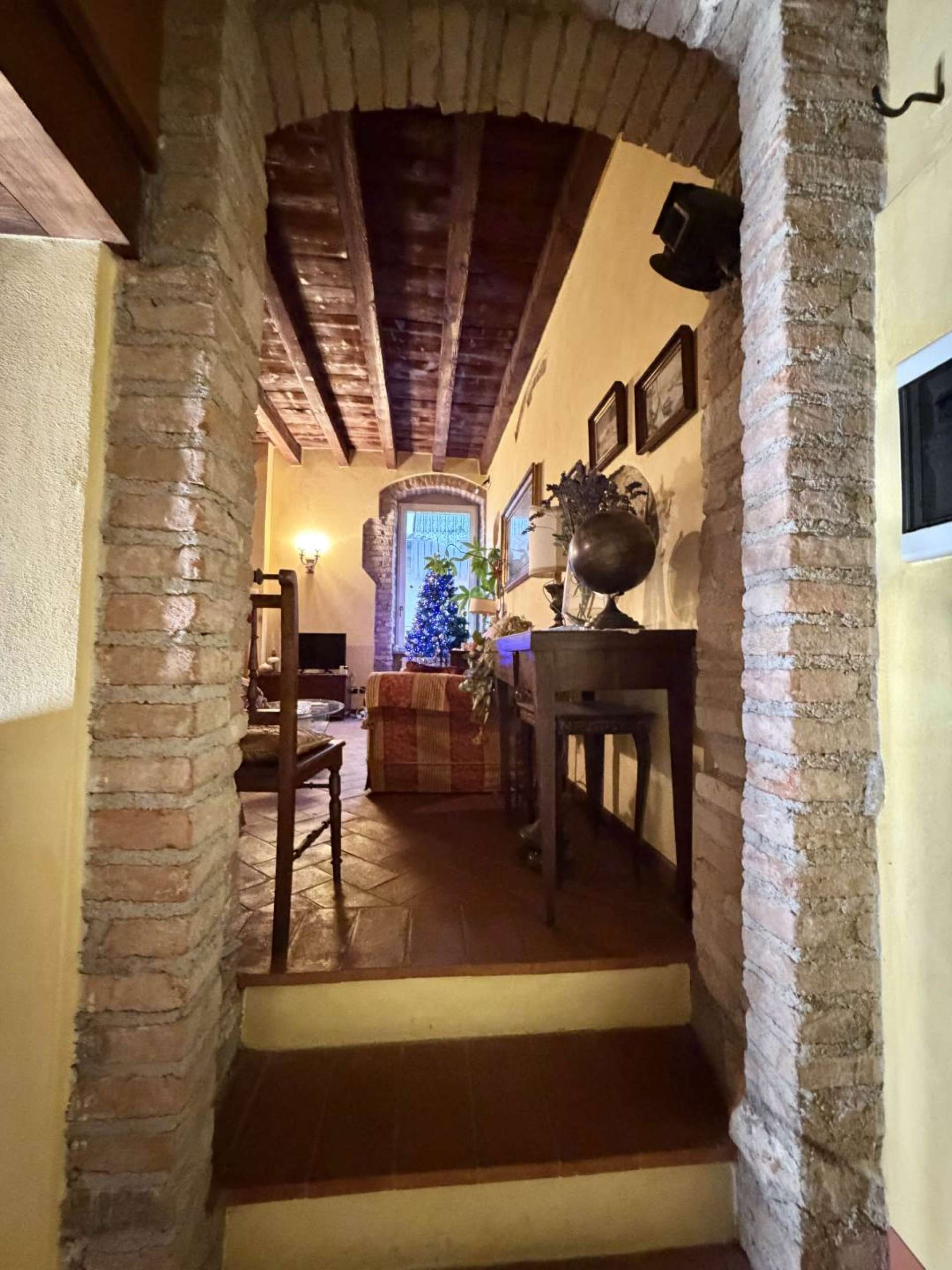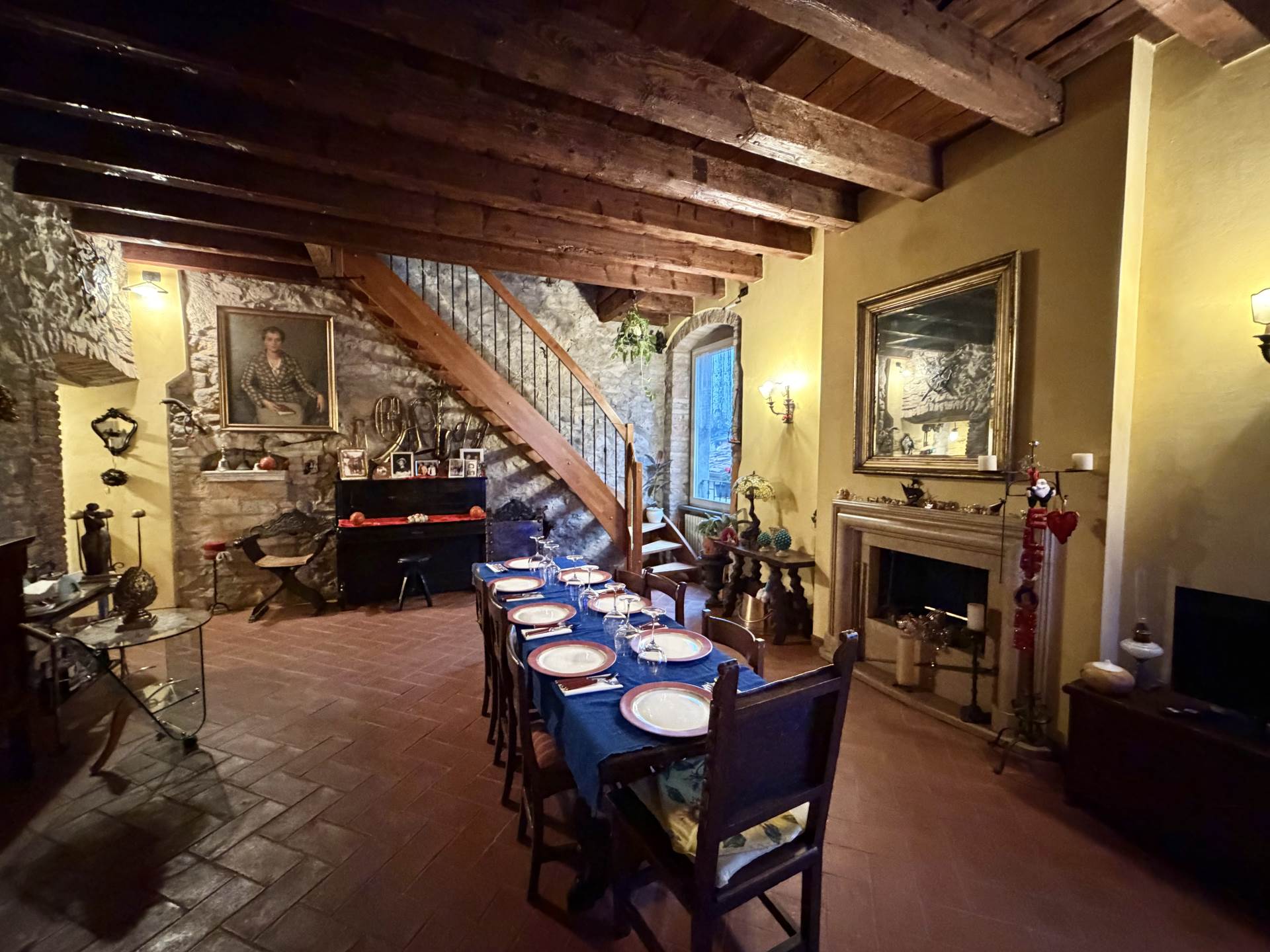Il secondo piano, collegato da scala interna, accoglie un soggiorno di grande charme con camino e due ampie finestre che garantiscono luce naturale.