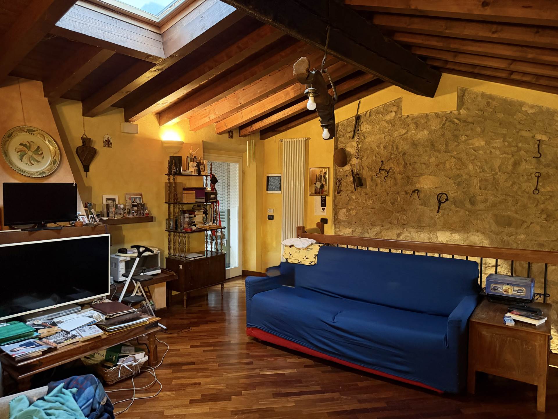 La mansarda ospita un grande open-space con angolo cottura e secondo camino, facilmente trasformabile in camera da letto.