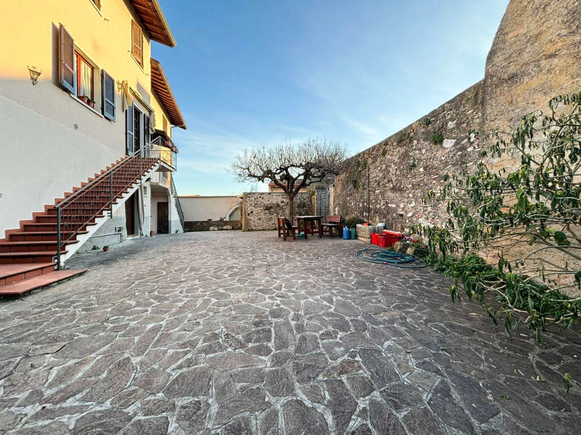 La proprietà è raggiungibile percorrendo le antiche viuzze del borgo ed è circondata da dimore in pietra naturale, in un contesto suggestivo e senza tempo.