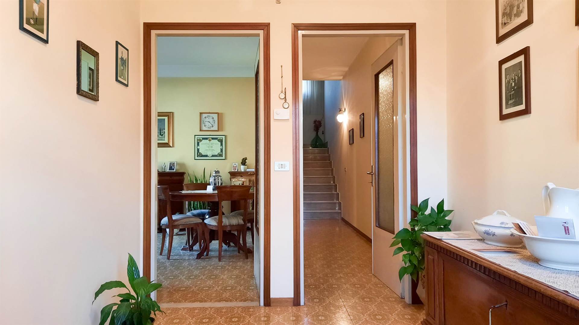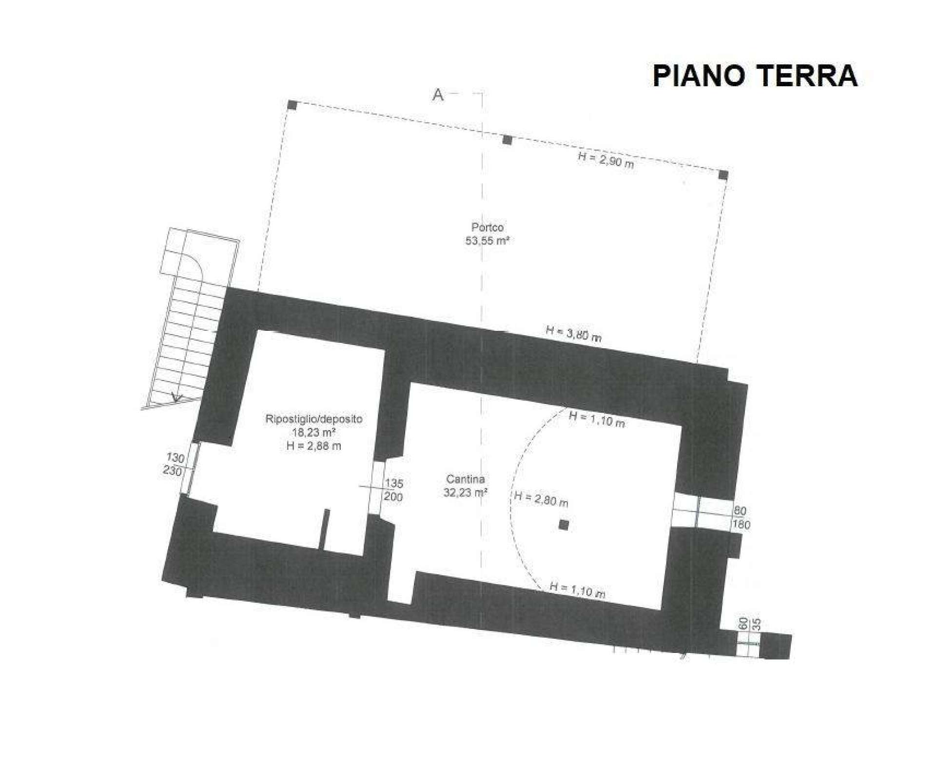Al piano terra si trovano un grande porticato, ideale per il parcheggio di più autovetture, e due cantine, una delle quali conserva le caratteristiche volte in pietra delle cantine di un tempo.