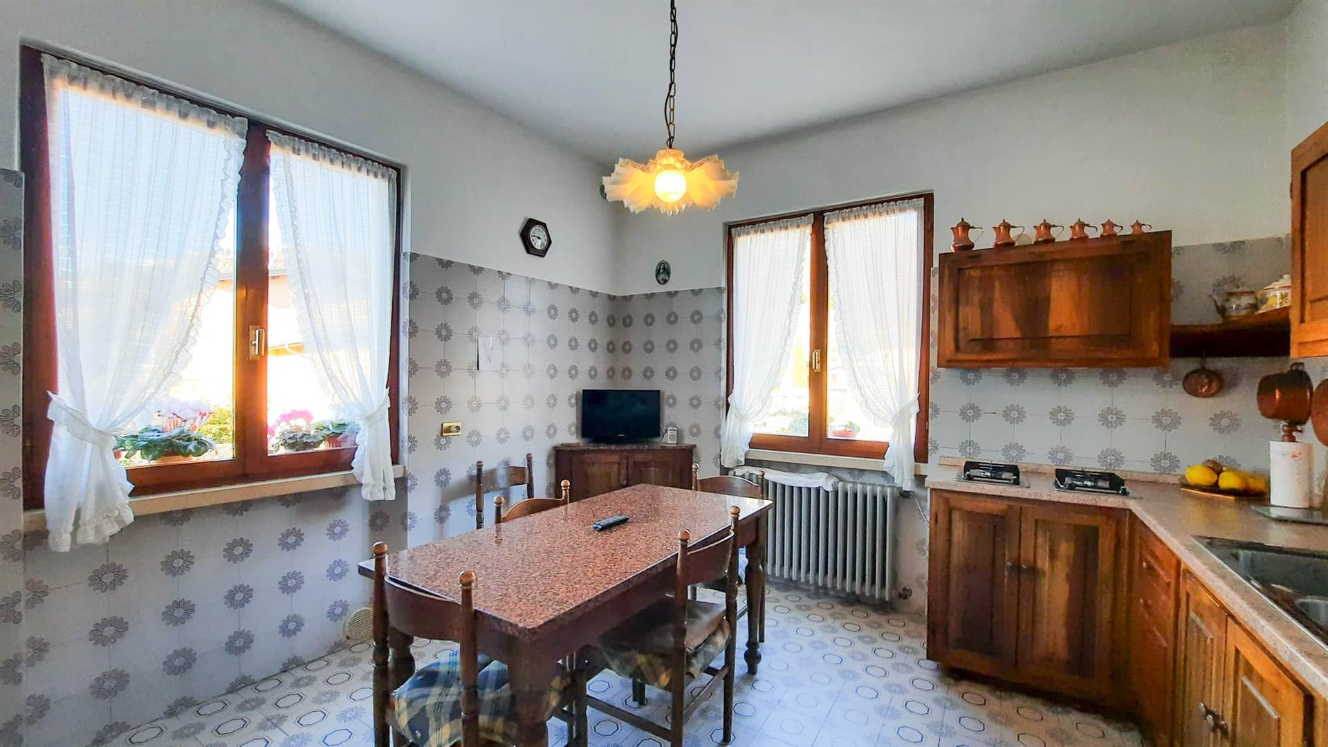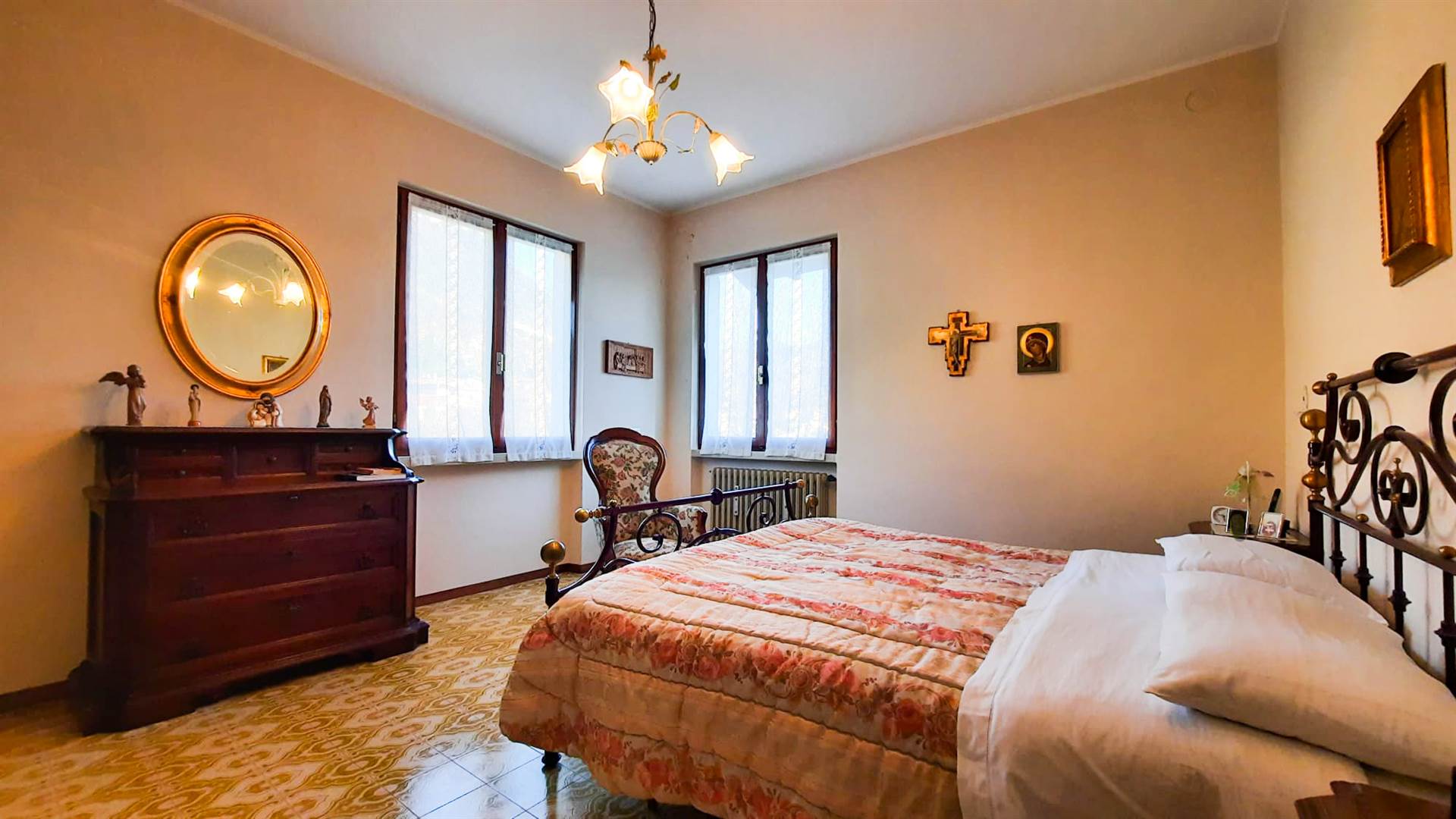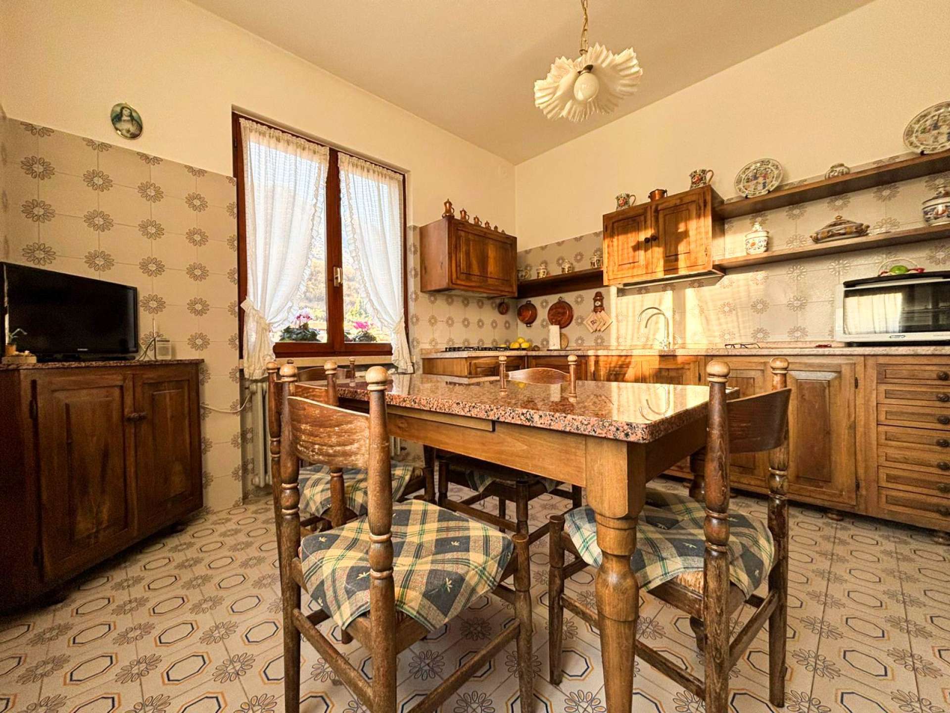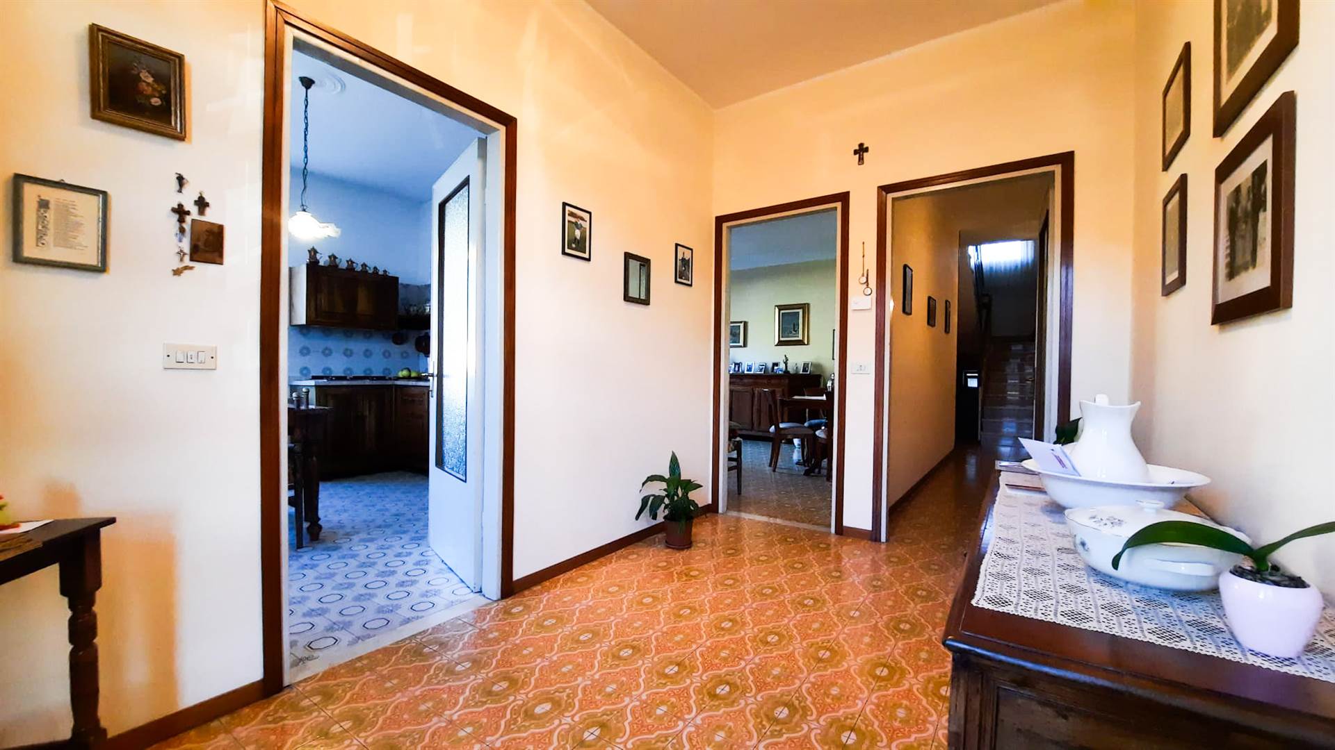 La parte abitativa occupa il primo e il secondo piano ed è composta da una cucina abitabile, un soggiorno, un grande ingresso tipico delle case di una volta, oggi facilmente integrabile nella zona giorno, quattro camere da letto di generose dimensioni e due servizi.