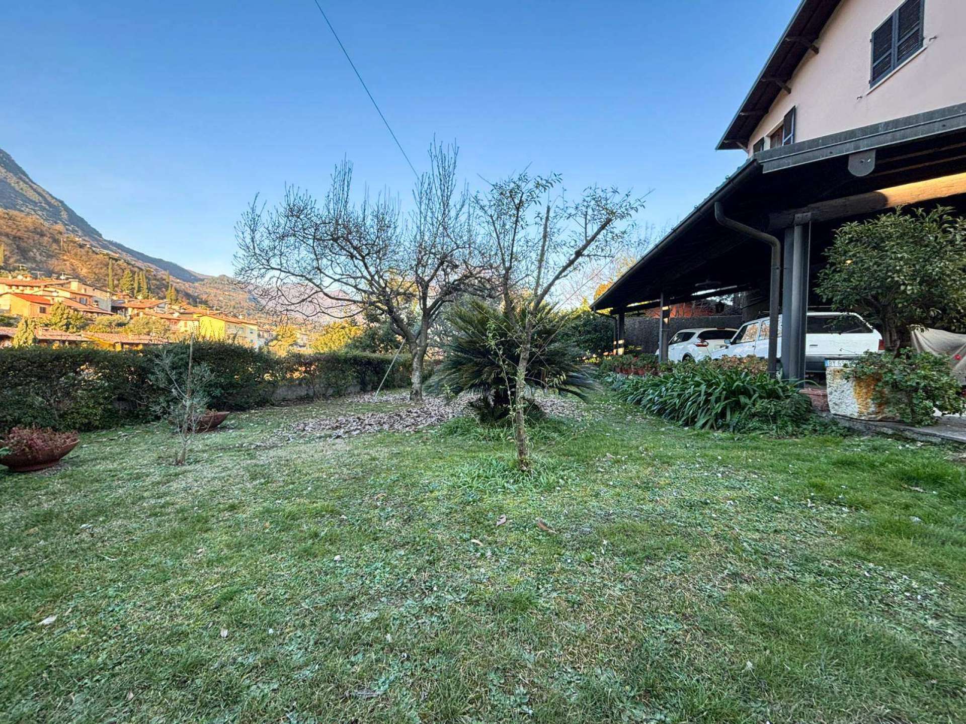 Il giardino privato, disposto su due comode balze, è sufficientemente ampio per ospitare una piscina e per vivere appieno la dimensione esterna in totale tranquillità.