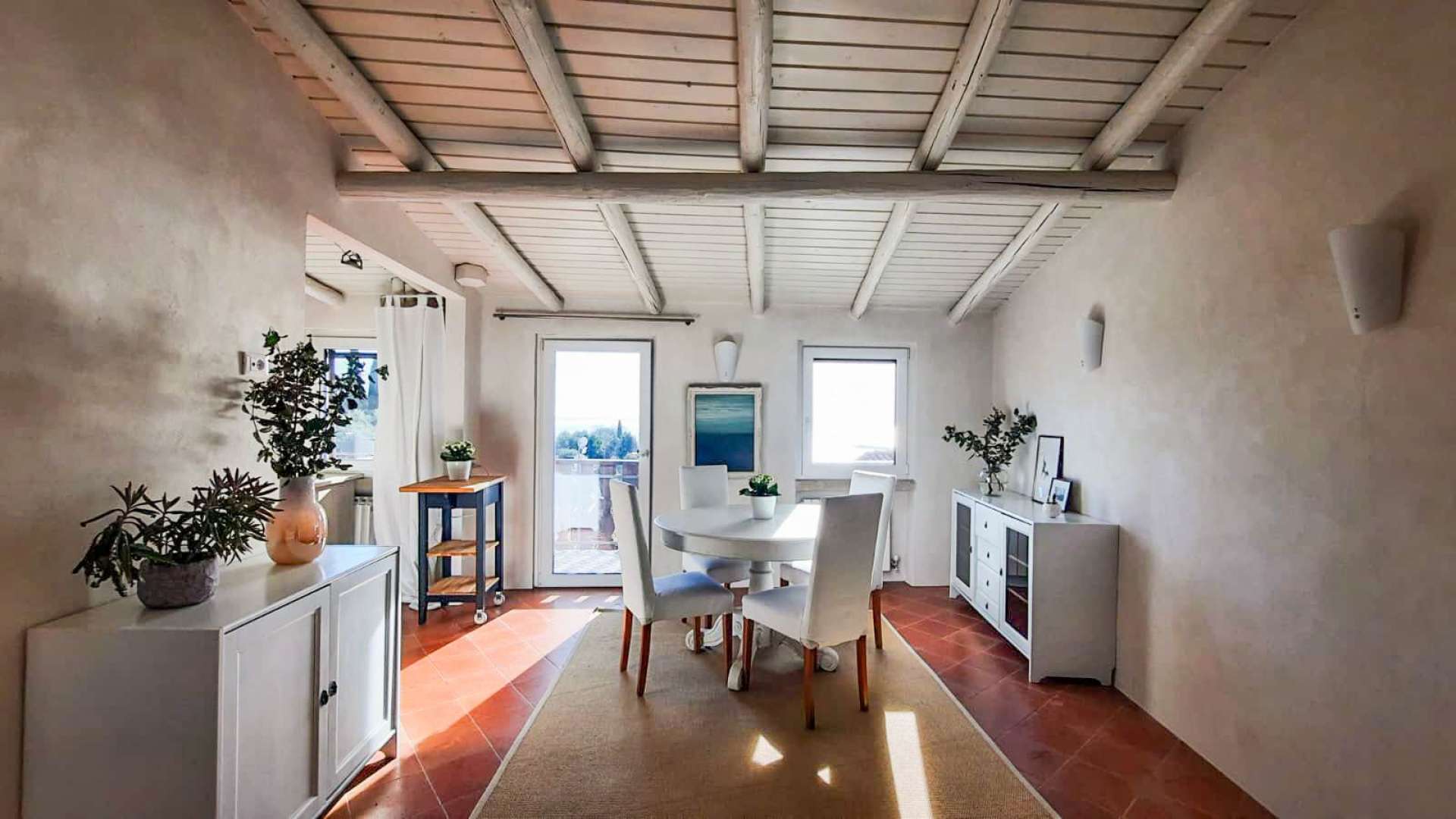 La ristrutturazione, effettuata nel 2018, ha interessato il bagno, gli impianti idraulico ed elettrico, i serramenti, la climatizzazione e la finitura delle pareti interne, valorizzando al contempo gli elementi originali dell'abitazione: travi arrotondate a vista, pavimenti in cotto e spesse murature perimetrali in pietra, che conferiscono calore e carattere all'ambiente.
